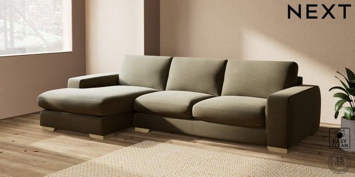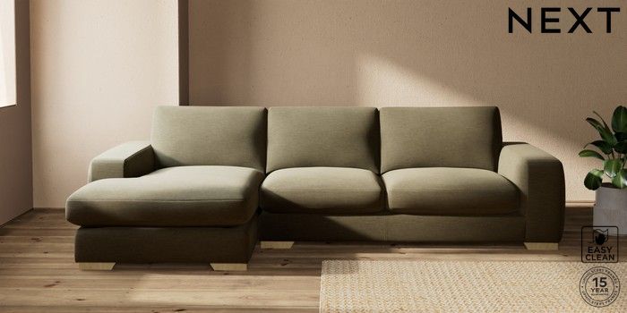 7.2.10 Houghton Deep Sit Large Sofa Chaise - Left Hand Fine Chenille Easy Clean Dark Moss Green Large Square Angle - Light | Made Click here to use our website with more accessibility support, for example screen readers