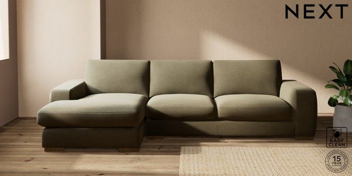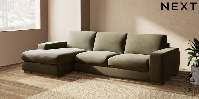 7.2.10 Houghton Deep Sit Large Sofa Chaise - Left Hand Fine Chenille Easy Clean Dark Moss Green Large Square Angle - Mid | Made Click here to use our website with more accessibility support, for example screen readers