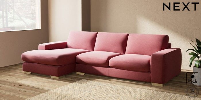 7.2.10 Houghton Deep Sit Large Sofa Chaise - Left Hand Fine Chenille Easy Clean Mid Pink Large Square Angle - Light | Made Click here to use our website with more accessibility support, for example screen readers