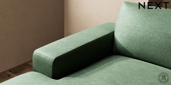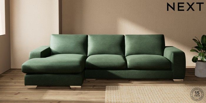 7.2.10 Houghton Deep Sit Large Sofa Chaise - Left Hand Luxe Chenille Dark Green Large Square Angle - Chrome Metal | Made Click here to use our website with more accessibility support, for example screen readers