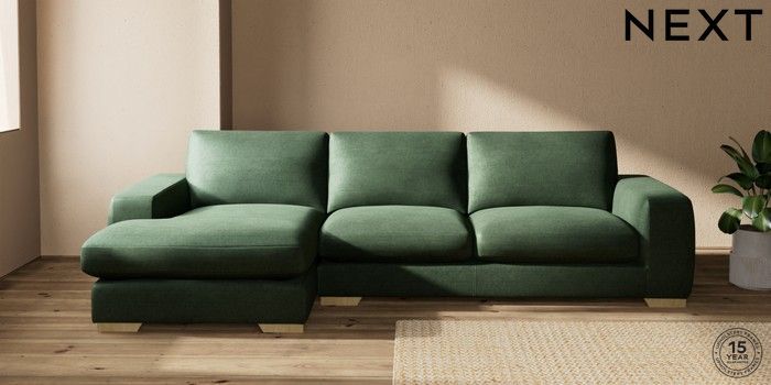 7.2.10 Houghton Deep Sit Large Sofa Chaise - Left Hand Luxe Chenille Dark Green Large Square Angle - Light | Made Click here to use our website with more accessibility support, for example screen readers