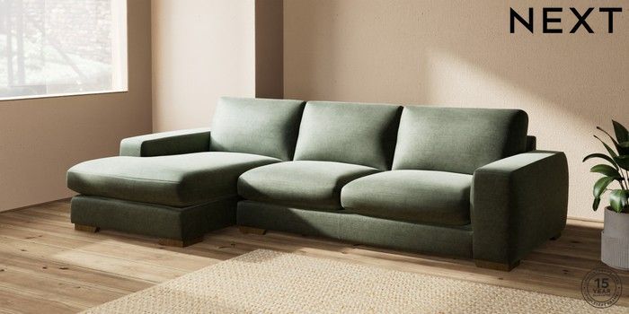 7.2.10 Houghton Deep Sit Large Sofa Chaise - Left Hand Luxe Chenille Mid Green Large Square Angle - Mid | Made Click here to use our website with more accessibility support, for example screen readers