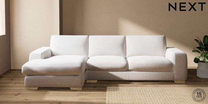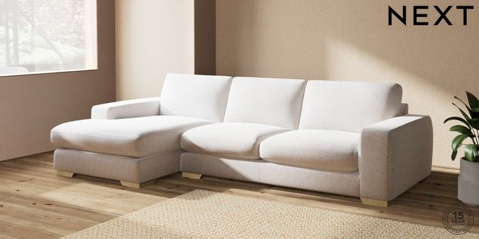 7.2.10 Houghton Deep Sit Large Sofa Chaise - Left Hand Multi Weave Oyster Large Square Angle - Light | Made Click here to use our website with more accessibility support, for example screen readers