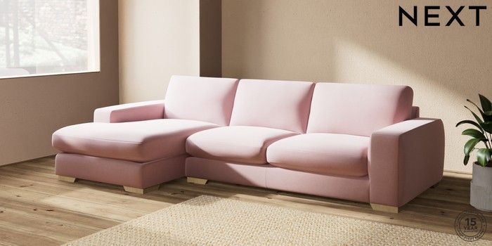 7.2.10 Houghton Deep Sit Large Sofa Chaise - Left Hand Natural Mix Light Rose Pink Large Square Angle - Light | Made Click here to use our website with more accessibility support, for example screen readers