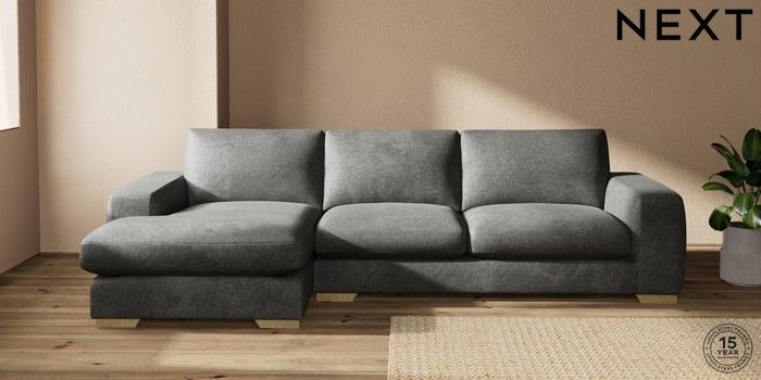 7.2.10 Houghton Deep Sit Large Sofa Chaise - Left Hand Plush Chenille Dark Grey Large Square Angle - Light | Made Click here to use our website with more accessibility support, for example screen readers