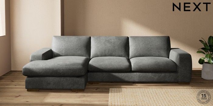 7.2.10 Houghton Deep Sit Large Sofa Chaise - Left Hand Plush Chenille Dark Grey Large Square Angle - Mid | Made Click here to use our website with more accessibility support, for example screen readers