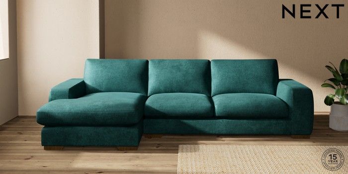 7.2.10 Houghton Deep Sit Large Sofa Chaise - Left Hand Plush Chenille Dark Teal Green Large Square Angle - Mid | Made Click here to use our website with more accessibility support, for example screen readers