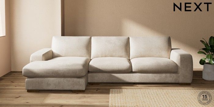 7.2.10 Houghton Deep Sit Large Sofa Chaise - Left Hand Plush Chenille Light Natural Large Square Angle - Mid | Made Click here to use our website with more accessibility support, for example screen readers