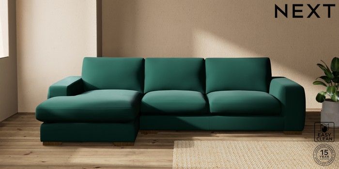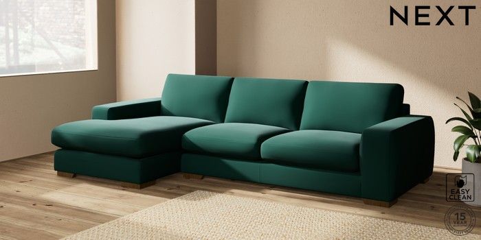 7.2.10 Houghton Deep Sit Large Sofa Chaise - Left Hand Plush Velvet Easy Clean Bottle Green Large Square Angle - Mid | Made Click here to use our website with more accessibility support, for example screen readers