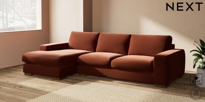 7.2.10 Houghton Deep Sit Large Sofa Chaise - Left Hand Plush Velvet Easy Clean Ginger Orange Large Square Angle - Mid | Made Click here to use our website with more accessibility support, for example screen readers