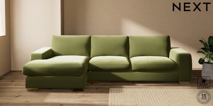 7.2.10 Houghton Deep Sit Large Sofa Chaise - Left Hand Plush Velvet Easy Clean Mid Olive Green Large Square Angle - Brushed Brass | Made Click here to use our website with more accessibility support, for example screen readers
