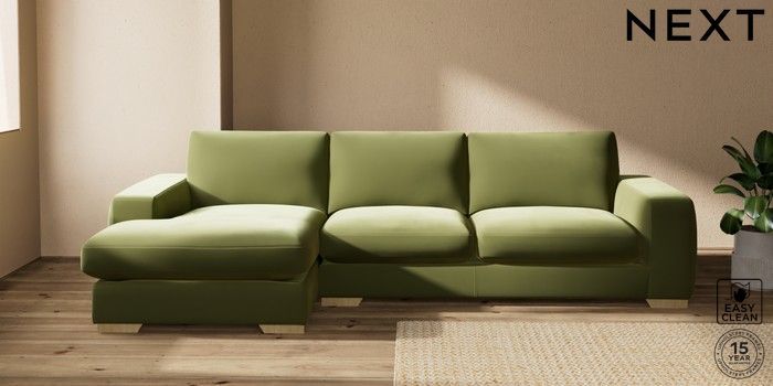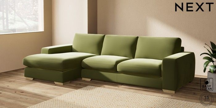 7.2.10 Houghton Deep Sit Large Sofa Chaise - Left Hand Plush Velvet Easy Clean Mid Olive Green Large Square Angle - Light | Made Click here to use our website with more accessibility support, for example screen readers