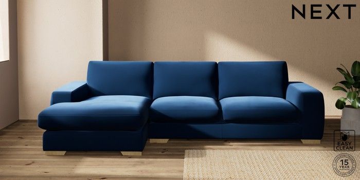 7.2.10 Houghton Deep Sit Large Sofa Chaise - Left Hand Plush Velvet Easy Clean Navy Blue Large Square Angle - Light | Made Click here to use our website with more accessibility support, for example screen readers