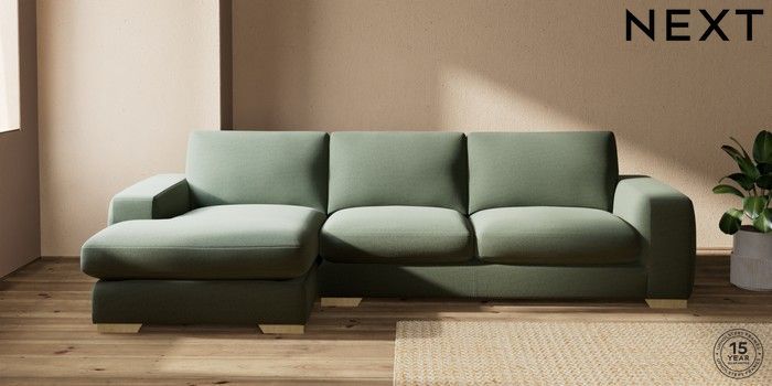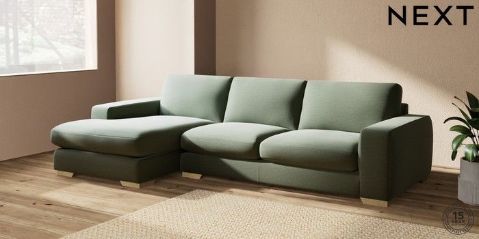 7.2.10 Houghton Deep Sit Large Sofa Chaise - Left Hand Relaxed Linen Look Dark Green Large Square Angle - Light | Made Click here to use our website with more accessibility support, for example screen readers
