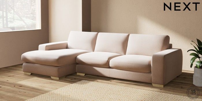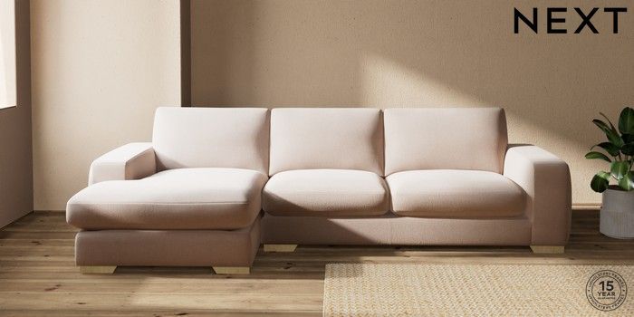 7.2.10 Houghton Deep Sit Large Sofa Chaise - Left Hand Relaxed Linen Look Mid Natural Large Square Angle - Light | Made Click here to use our website with more accessibility support, for example screen readers