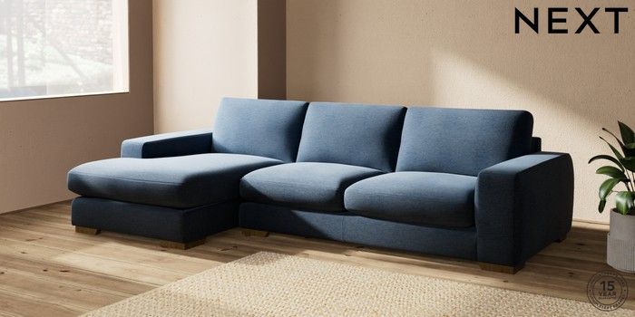 7.2.10 Houghton Deep Sit Large Sofa Chaise - Left Hand Ripple Chenille Dark Blue Large Square Angle - Mid | Made Click here to use our website with more accessibility support, for example screen readers