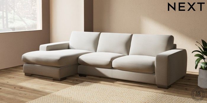 7.2.10 Houghton Deep Sit Large Sofa Chaise - Left Hand Ripple Chenille Light Natural Large Square Angle - Gunmetal | Made Click here to use our website with more accessibility support, for example screen readers