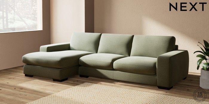 7.2.10 Houghton Deep Sit Large Sofa Chaise - Left Hand Ripple Chenille Mid Moss Green Large Square Angle - Dark | Made Click here to use our website with more accessibility support, for example screen readers