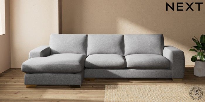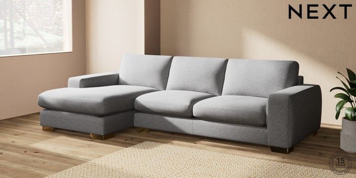 7.2.10 Houghton Deep Sit Large Sofa Chaise - Left Hand Studio Chenille Mid Grey Large Square Angle - Brushed Brass | Made Click here to use our website with more accessibility support, for example screen readers