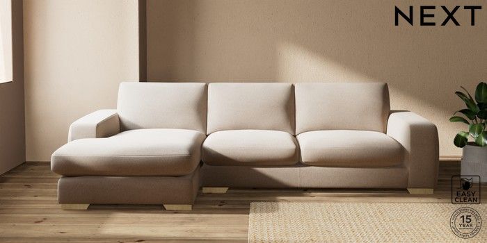 7.2.10 Houghton Deep Sit Large Sofa Chaise - Left Hand Tweedy Blend Easy Clean Light Dove Natural Large Square Angle - Light | Made Click here to use our website with more accessibility support, for example screen readers