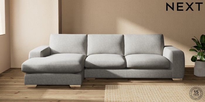 7.2.10 Houghton Deep Sit Large Sofa Chaise - Left Hand Tweedy Chenille Mid Grey Large Square Angle - Chrome Metal | Made Click here to use our website with more accessibility support, for example screen readers