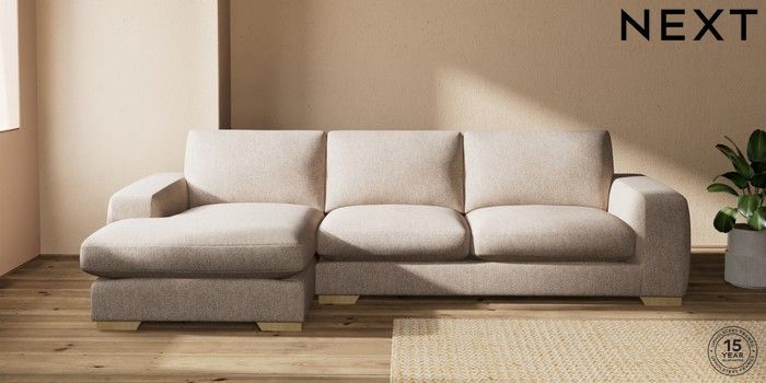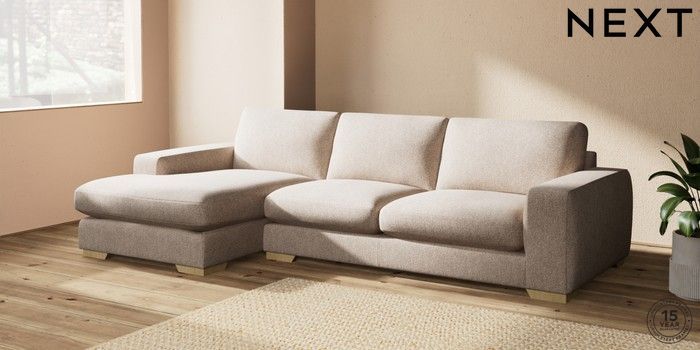 7.2.10 Houghton Deep Sit Large Sofa Chaise - Left Hand Tweedy Chenille Mid Natural Large Square Angle - Light | Made Click here to use our website with more accessibility support, for example screen readers