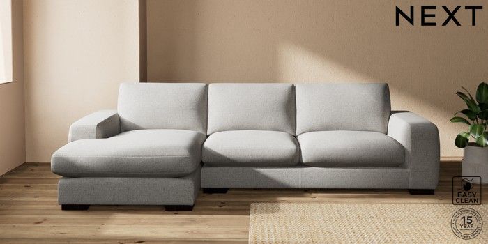 7.2.10 Houghton Deep Sit Large Sofa Chaise - Left Hand Woven Chenille Easy Clean Light Grey Large Square Angle - Dark | Made Click here to use our website with more accessibility support, for example screen readers