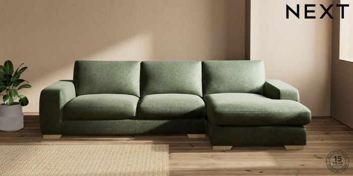 7.2.10 Houghton Deep Sit Large Sofa Chaise - Right Hand Boucle Chenille Dark Moss Green Large Square Angle - Light | Made Click here to use our website with more accessibility support, for example screen readers