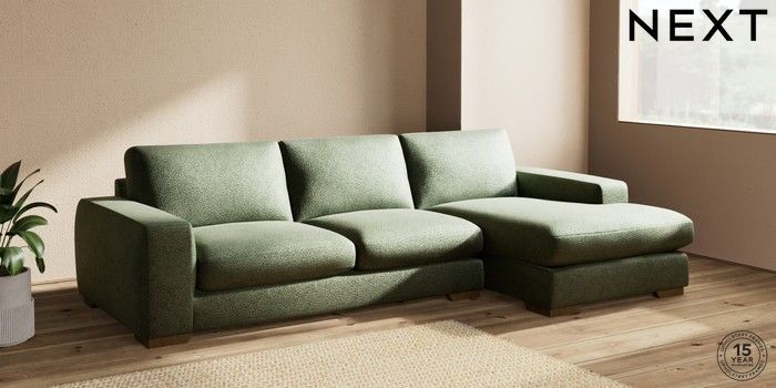 7.2.10 Houghton Deep Sit Large Sofa Chaise - Right Hand Boucle Chenille Dark Moss Green Large Square Angle - Mid | Made Click here to use our website with more accessibility support, for example screen readers