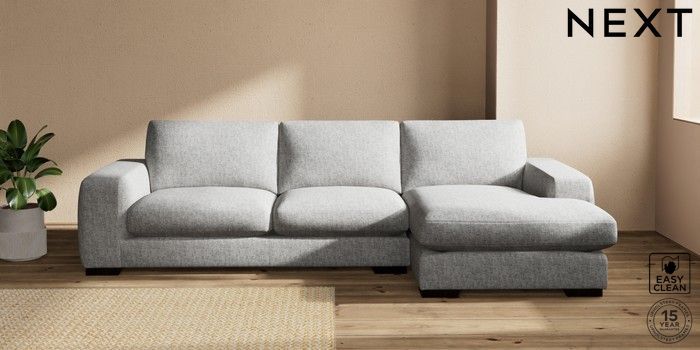 7.2.10 Houghton Deep Sit Large Sofa Chaise - Right Hand Chunky Boucle Easy Clean Light Grey Large Square Angle - Dark | Made Click here to use our website with more accessibility support, for example screen readers