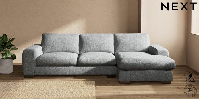 7.2.10 Houghton Deep Sit Large Sofa Chaise - Right Hand Chunky Boucle Easy Clean Mid Grey Large Square Angle - Gunmetal | Made Click here to use our website with more accessibility support, for example screen readers