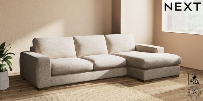7.2.10 Houghton Deep Sit Large Sofa Chaise - Right Hand Chunky Boucle Easy Clean Mid Natural Large Square Angle - Mid | Made Click here to use our website with more accessibility support, for example screen readers