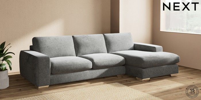 7.2.10 Houghton Deep Sit Large Sofa Chaise - Right Hand Chunky Chenille Dark Grey Large Square Angle - Chrome Metal | Made Click here to use our website with more accessibility support, for example screen readers