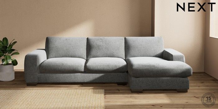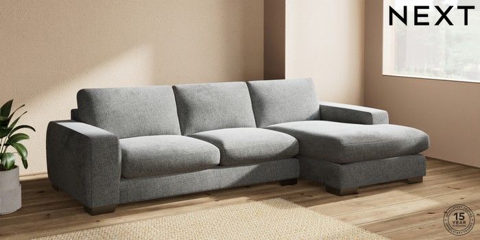 7.2.10 Houghton Deep Sit Large Sofa Chaise - Right Hand Chunky Chenille Dark Grey Large Square Angle - Gunmetal | Made Click here to use our website with more accessibility support, for example screen readers