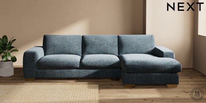 7.2.10 Houghton Deep Sit Large Sofa Chaise - Right Hand Chunky Chenille Dark Navy Blue Large Square Angle - Brushed Brass | Made Click here to use our website with more accessibility support, for example screen readers