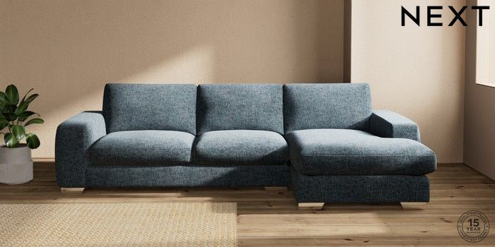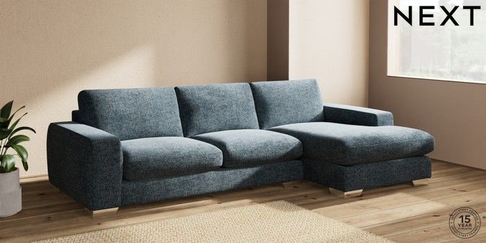 7.2.10 Houghton Deep Sit Large Sofa Chaise - Right Hand Chunky Chenille Dark Navy Blue Large Square Angle - Chrome Metal | Made Click here to use our website with more accessibility support, for example screen readers