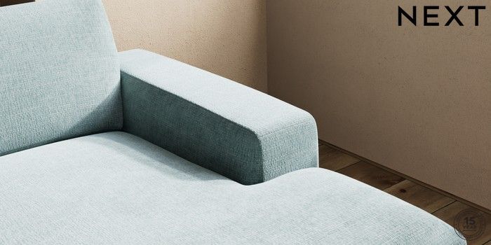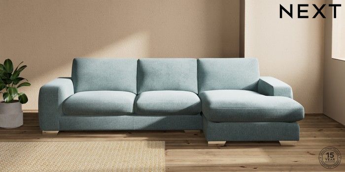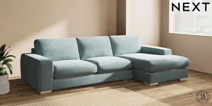 7.2.10 Houghton Deep Sit Large Sofa Chaise - Right Hand Chunky Chenille Light Teal Green Large Square Angle - Chrome Metal | Made Click here to use our website with more accessibility support, for example screen readers