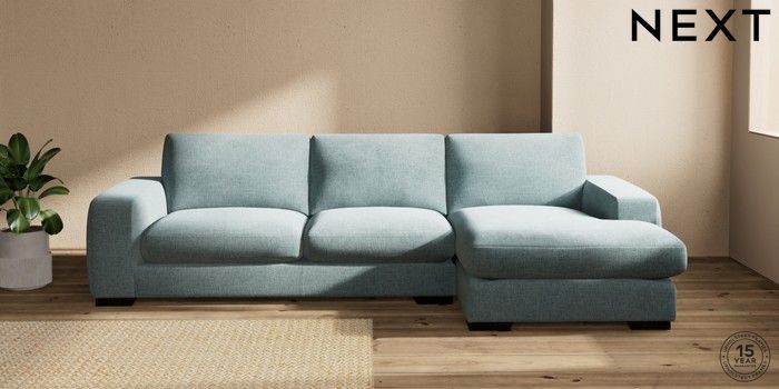 7.2.10 Houghton Deep Sit Large Sofa Chaise - Right Hand Chunky Chenille Light Teal Green Large Square Angle - Dark | Made Click here to use our website with more accessibility support, for example screen readers