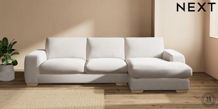 7.2.10 Houghton Deep Sit Large Sofa Chaise - Right Hand Chunky Chenille Oyster Large Square Angle - Light | Made Click here to use our website with more accessibility support, for example screen readers