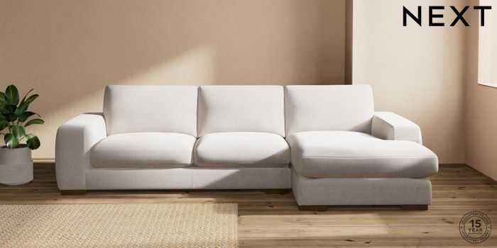 7.2.10 Houghton Deep Sit Large Sofa Chaise - Right Hand Chunky Chenille Oyster Large Square Angle - Mid | Made Click here to use our website with more accessibility support, for example screen readers