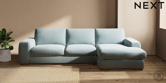 7.2.10 Houghton Deep Sit Large Sofa Chaise - Right Hand Chunky Marl Mid Blue Large Square Angle - Mid | Made Click here to use our website with more accessibility support, for example screen readers