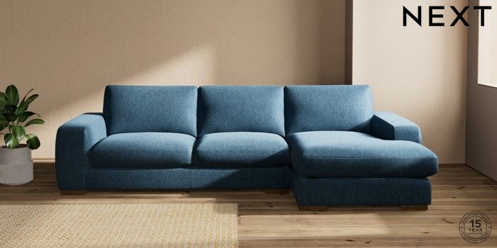 7.2.10 Houghton Deep Sit Large Sofa Chaise - Right Hand Cotswold Chenille Dark Blue Large Square Angle - Mid | Made Click here to use our website with more accessibility support, for example screen readers
