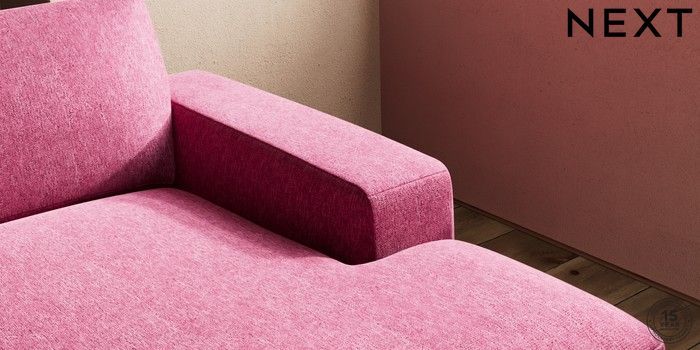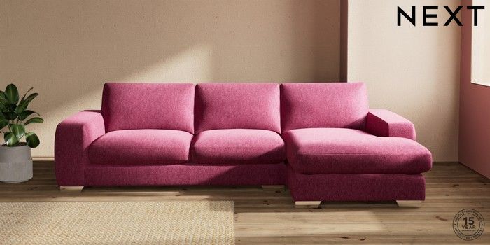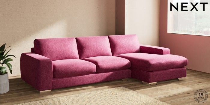 7.2.10 Houghton Deep Sit Large Sofa Chaise - Right Hand Cotswold Chenille Dark Raspberry Pink Large Square Angle - Chrome Metal | Made Click here to use our website with more accessibility support, for example screen readers