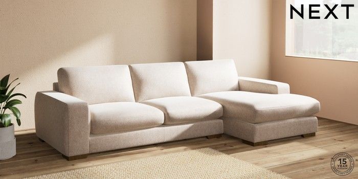 7.2.10 Houghton Deep Sit Large Sofa Chaise - Right Hand Cotswold Chenille Light Natural Large Square Angle - Mid | Made Click here to use our website with more accessibility support, for example screen readers