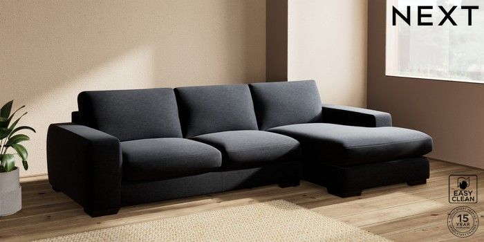7.2.10 Houghton Deep Sit Large Sofa Chaise - Right Hand Fine Chenille Easy Clean Black Large Square Angle - Dark | Made Click here to use our website with more accessibility support, for example screen readers
