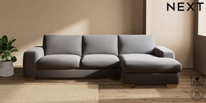 7.2.10 Houghton Deep Sit Large Sofa Chaise - Right Hand Fine Chenille Easy Clean Dark Smoke Grey Large Square Angle - Brushed Brass | Made Click here to use our website with more accessibility support, for example screen readers