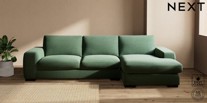 7.2.10 Houghton Deep Sit Large Sofa Chaise - Right Hand Fine Chenille Easy Clean Mid Khaki Green Large Square Angle - Dark | Made Click here to use our website with more accessibility support, for example screen readers