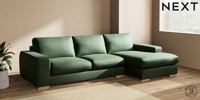 7.2.10 Houghton Deep Sit Large Sofa Chaise - Right Hand Luxe Chenille Dark Green Large Square Angle - Light | Made Click here to use our website with more accessibility support, for example screen readers