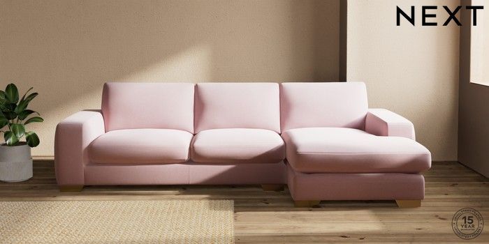7.2.10 Houghton Deep Sit Large Sofa Chaise - Right Hand Natural Mix Light Rose Pink Large Square Angle - Brushed Brass | Made Click here to use our website with more accessibility support, for example screen readers