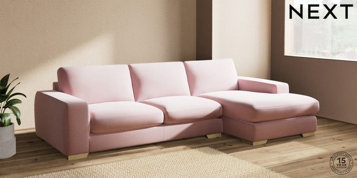 7.2.10 Houghton Deep Sit Large Sofa Chaise - Right Hand Natural Mix Light Rose Pink Large Square Angle - Light | Made Click here to use our website with more accessibility support, for example screen readers